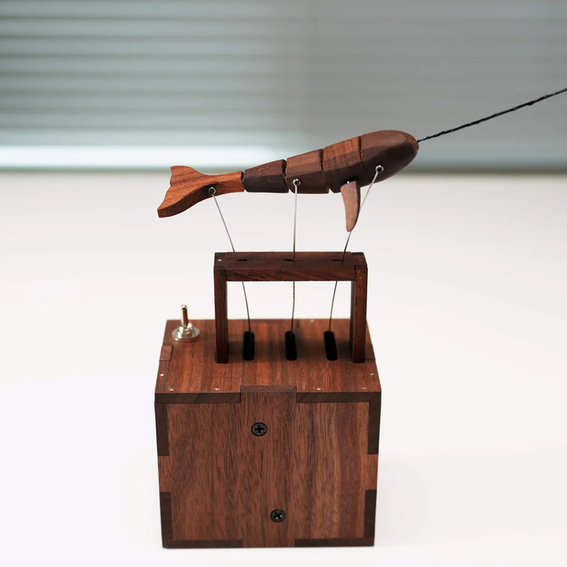 Bring the deep-sea rhythm to your space. Our walnut whale—powered by a quiet motor and interlocking gears—rises and dips in a slow, tidal motion, turning mental noise into a steady, breathing cadence.
