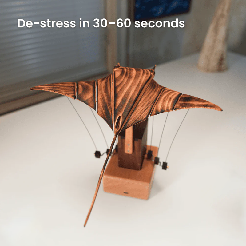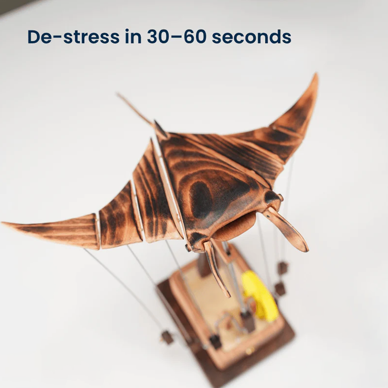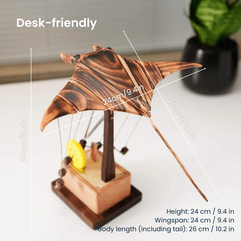 Bring the ocean’s silent ballet to your space. Our walnut manta ray, powered by interlocking gears, glides with every turn of the crank—transforming stress into a calm, flowing rhythm.